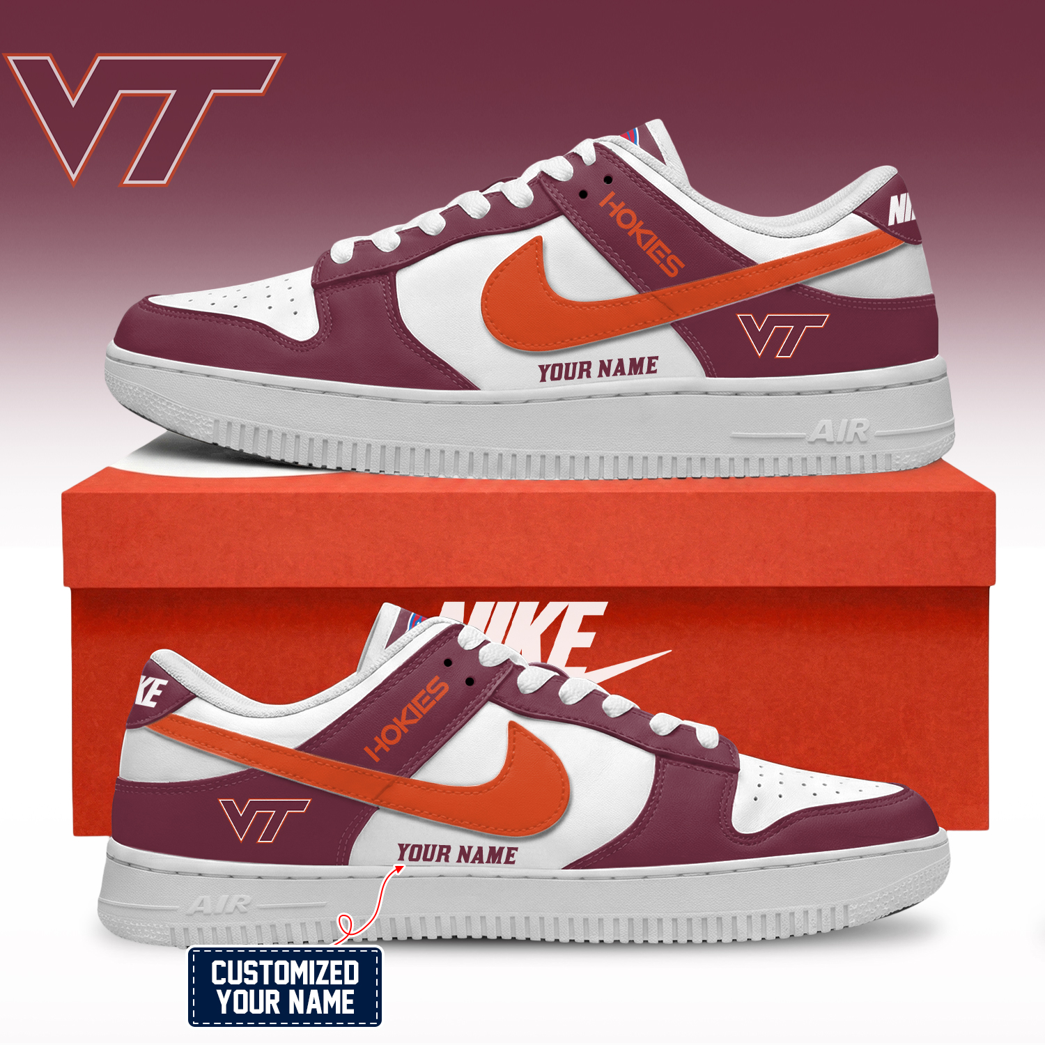 Virginia Tech Hokies NCAA Custom Air Force Shoes