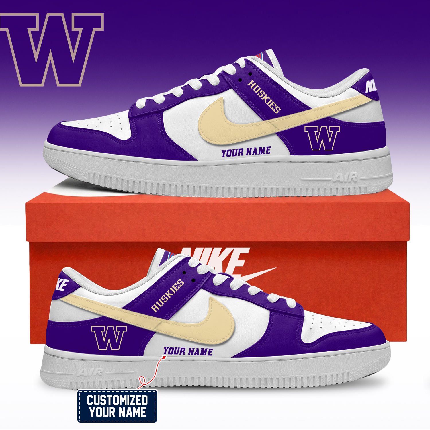 Washington Huskies NCAA Custom Air Force Shoes
